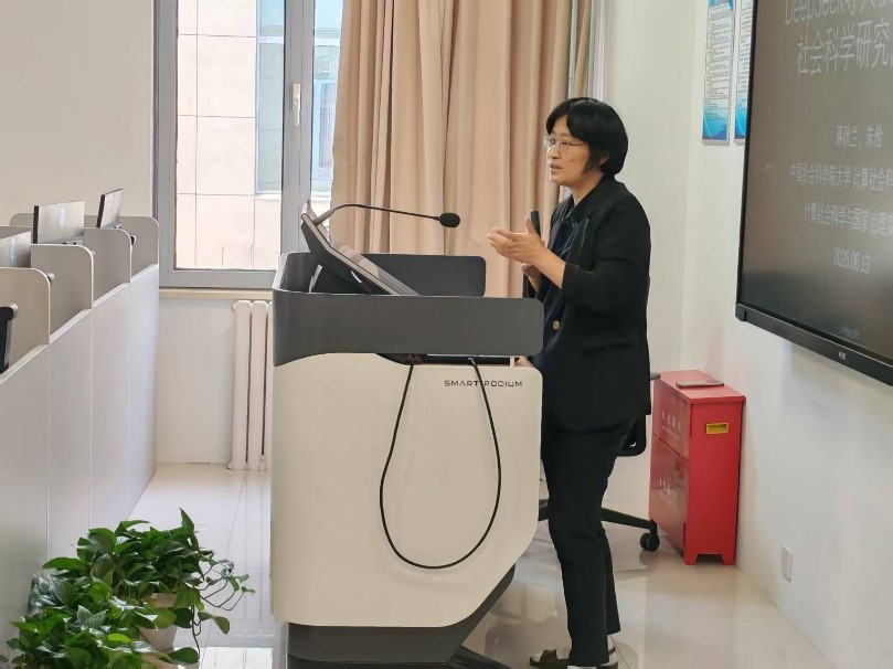 蒋欣兰副教授以其深厚的学术背景和对人工智能领域的深刻理解,为我们带来了题为“DeepSeek等大模型对哲学社会科学研究的影响的精彩演讲。在她的演讲中,蒋教授不仅详细介绍了DeepSeek模型的技术特点和工作原理,还深入探讨了这些大模型技术如何为哲学社会科学研究带来创新和变革。她通过具体的案例分析,展示了大模型在文本分析、学术研究和知识发现等方面的强大能力,以及它们如何帮助研究者更高效地处理和分析大量数据,从而推动哲学社会科学研究的深入发展。