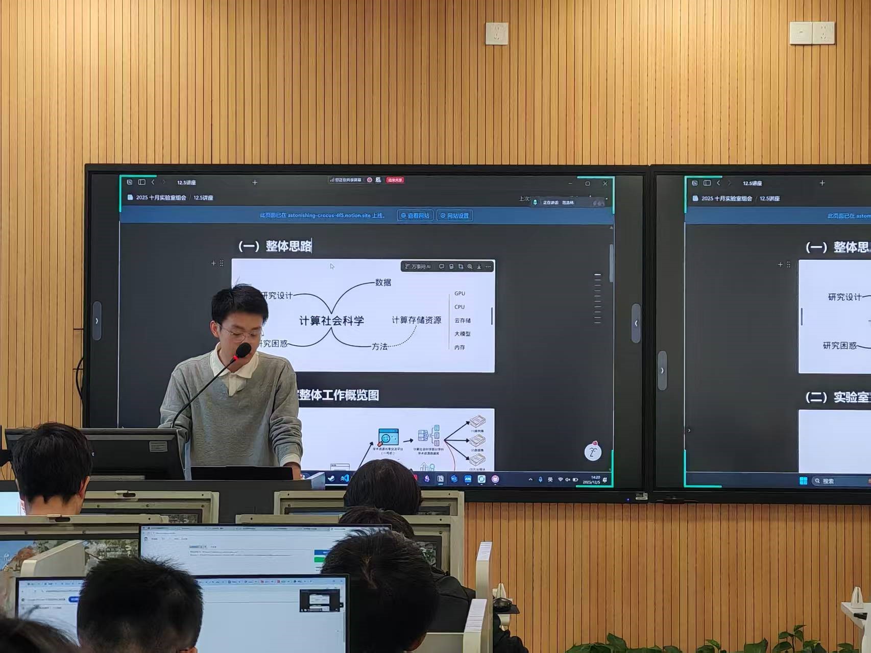 实验室资源的深度盘点与赋能:明确了实验室在数据、算力、存储、大模型 API 等方面的支持能力,并通过现场演示详细讲解了各项资源的申请与使用方法,为师生开展计算社会科学研究提供了实质性的资源保障。