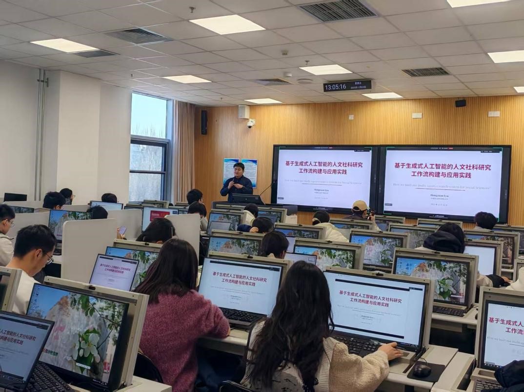 “大模型赋能人文社科工作坊”第三期于2025125日(周五)13:00-14:30在教学综合办公楼313机房成功举办。本次工作坊紧密围绕国家“人工智能+”发展战略,聚焦生成式人工智能技术在哲学社会科学领域的深度融合与创新应用,旨在搭建技术交流与实践应用平台,助力师生掌握前沿 AI 技术在社科研究中的具体工作流构建方法,推动人文社科研究的数字化、智能化发展。